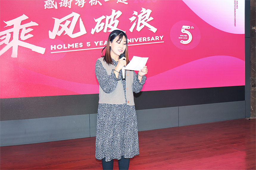 霍爾姆斯各中心負責人以及新老員工代表亦登臺致辭,人事行政部Anne 2017年加入霍爾姆斯,見(jiàn)證了公司成員從5人到20人不斷壯大的過(guò)程。產(chǎn)品中心Tina 表示沒(méi)有完美的個(gè)人,只有完美的團隊,愿大家一起成長(cháng)。供管中心Linda回憶了自己初入公司時(shí)曾懷疑自己是否勝任工作,但是得到領(lǐng)導不斷的鼓勵和指引的心路歷程。老員工代表Rick在霍爾姆斯第一位員工,五年來(lái)兢兢業(yè)業(yè),是霍爾姆斯從無(wú)到有,從有到優(yōu)的見(jiàn)證者,他兩次鞠躬,感動(dòng)了在場(chǎng)的每一個(gè)人。新員工代表Mary是一位95后女生,她表示來(lái)到霍爾姆斯是偶然也是一份幸運,心思細膩的她細數了每一位同事對她工作上的幫助和關(guān)懷。